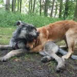 - Spelen: eerst met je grote vriend Scott, je maatje Taro, de grote reuen in het park waar je heerlijk meisjesachtig “op aan ging”, en natuurlijk met je zelf uitgekozen vriend Olivier (Olly) Elke avond na het eten: fanatiek met een flos door de kamer sleuren, gegrom, ik die je achterna zat en jij met grote sprongen wegrennend. Lekker ruig (je bent tenslotte een waak- en verdedigingshond), wat regelmatig blauwe plekken opleverde maar ook een heerlijke gezamenlijke workout was.